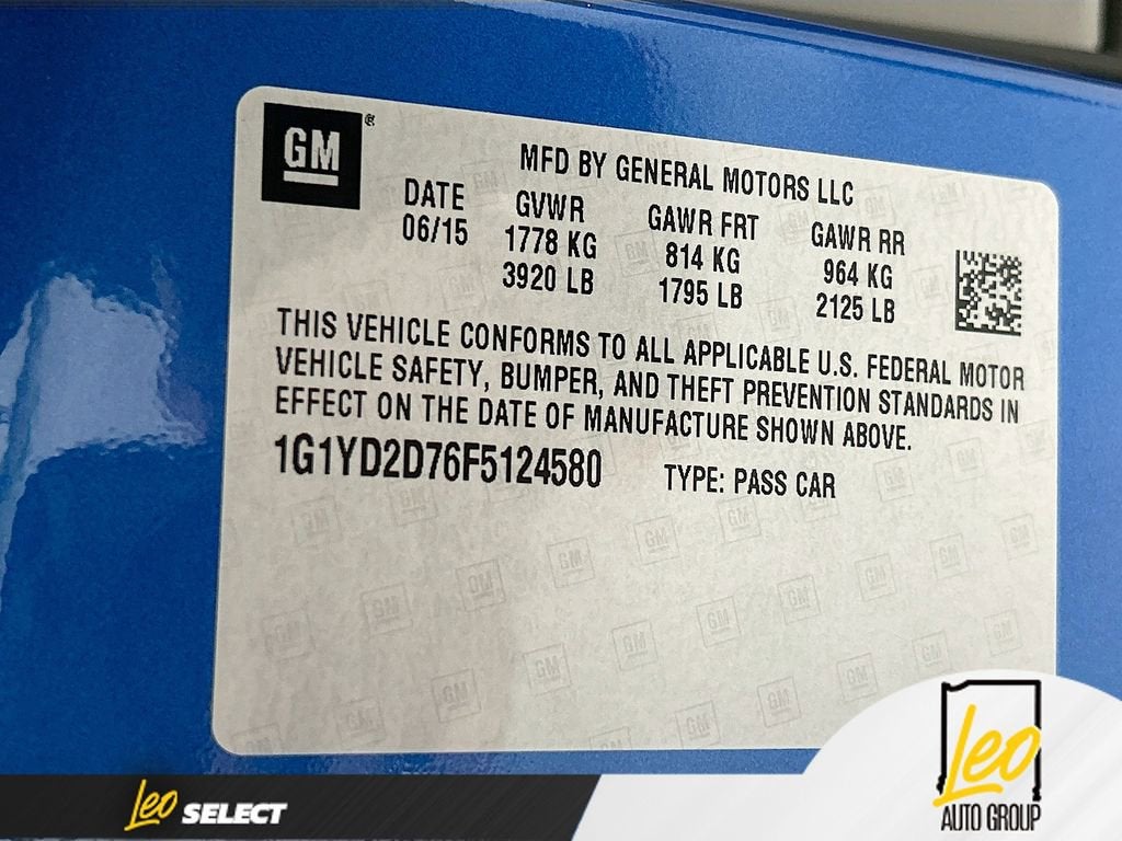 Odometer is 24167 miles below market average!2015 Chevrolet Corvette Stingray 2LTLaguna Blue Tintcoat 6.2L V8 RWD 8 Speed Paddle Shift with Automatic ModesCertification Program Details: This vehicle has completed our 121-point Leo Select inspection and meets our standard for well-maintained, high-quality pre-owned cars. Mechanical and safety items are addressed as needed, and cosmetic improvements may be performed according to our reconditioning guidelines. These vehicles represent the core of our inventory—solid condition, confidently reconditioned, and transparently documented so you know exactly what you're getting.2LT Interior Trim, Auto-Dimming Inside Frameless Rearview Mirror, Battery Protection Package, Black Indoor Vehicle Cover w/Stingray Logo (LPO), Body-Color Outside Heated Power-Adjustable Mirrors, Bose Advanced 10-Speaker Audio System Feature, Cargo Net, Head-Up Display, Heated & Vented Driver & Passenger Seats, Luggage Shade, Memory Package, Power Lumbar/Bolster Seat Adjusters, Preferred Equipment Group 2LT, Stingray Exterior Appearance Package (LPO), Theft Deterrent System, Underhood Liner w/Stingray Logo (LPO), Universal Home Remote, Wheel Center Caps w/Stingray Logo (LPO). Awards:* Car and Driver 10 Best Cars * JD Power Automotive Performance, Execution and Layout (APEAL) Study * Ward's 10 Best Engines * 2015 KBB.com Best Buy Awards * 2015 KBB.com Best Resale Value AwardsCar and Driver, January 2017.**LEO CHEVROLET - LOCATED AT 4105 W 96TH ST, INDIANAPOLIS, IN 46268* Take advantage of our VIP Test Drive Experience by contacting us at 317-872-3315 to schedule a test drive. Leo Chevrolet delivers a modern, hassle-free buying and service experience built around transparency, trust, and making it easy for every customer who walks through our doors. We are proud to serve guests in Indianapolis, Zionsville, Carmel, Fishers, Noblesville, Greenwood, Avon, and all surrounding Central Indiana areas.Additional $251.05 doc fee, tax, title, and registration are not included in the advertised sale price. We take every effort to ensure the advertised pricing information is accurate, however, we recommend you contact the dealership to confirm pricing information and inventory.