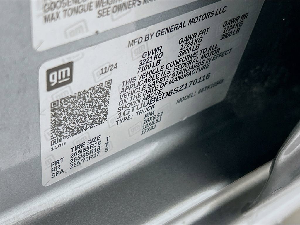 10-Speed Automatic, 4WD, Black Cloth, 120-Volt Bed Mounted Power Outlet, 120-Volt Interior Power Outlet, 2 Charge/Data USB Ports, 2 Type-C Charge-Only Rear USB Ports, Adaptive Cruise Control, All-Weather Floor Liner (LPO), Auto-Locking Rear Differential, Chrome Header w/Medium Silver Grille Insert Bars, Color-Keyed Carpeting Floor Covering, Deep-Tinted Glass, Dual Exhaust System, Dual-Zone Automatic Climate Control, Electric Rear-Window Defogger, Front Frame-Mounted Black Recovery Hooks, Front Rubberized-Vinyl Floor Mats, HD Rear Vision Camera, HD Surround Vision, Heavy-Duty Air Filter, Hill Descent Control, Hitch Guidance, Hitch View, In-Vehicle Trailering System App, Integrated Trailer Brake Controller, Keyless Open & Start, LED Cargo Area Lighting, Manual Tilt-Wheel & Telescoping Steering Column, Navigation System, Off-Road Suspension, OnStar Services Capable, Perimeter Lighting, Power Door Locks, Power Front Windows w/Driver Express Up/Down, Power Front Windows w/Passenger Express Down, Power Rear Windows w/Express Down, Power Sliding Rear Window w/Rear Defogger, Preferred Equipment Group 3SA, Preferred Package, Push Button Start, Rear Cross Traffic Braking, Rear Pedestrian Detection, Rear Rubberized-Vinyl Floor Mats, Rear Wheelhouse Liners, Remote Start Package, Remote Vehicle Starter System, Sierra Safety Plus Package, SiriusXM w/360L Trial Subscription, SLE Convenience Package, SLE Value Package, Spray-On Pickup Bedliner w/GMC Logo, Standard Suspension Package, Steering Wheel Audio Controls, Theft Deterrent System (Unauthorized Entry), Trailer Camera Provisions, Trailer Side Blind Zone Alert, Trailering Package, Ultrasonic Front & Rear Park Assist, Universal Home Remote, Wheels: 18 x 8.5 6-Spoke Machined Aluminum, Wi-Fi Hotspot Capable, X31 Hard Badge, X31 Off-Road & Protection Package, X31 Off-Road Package.